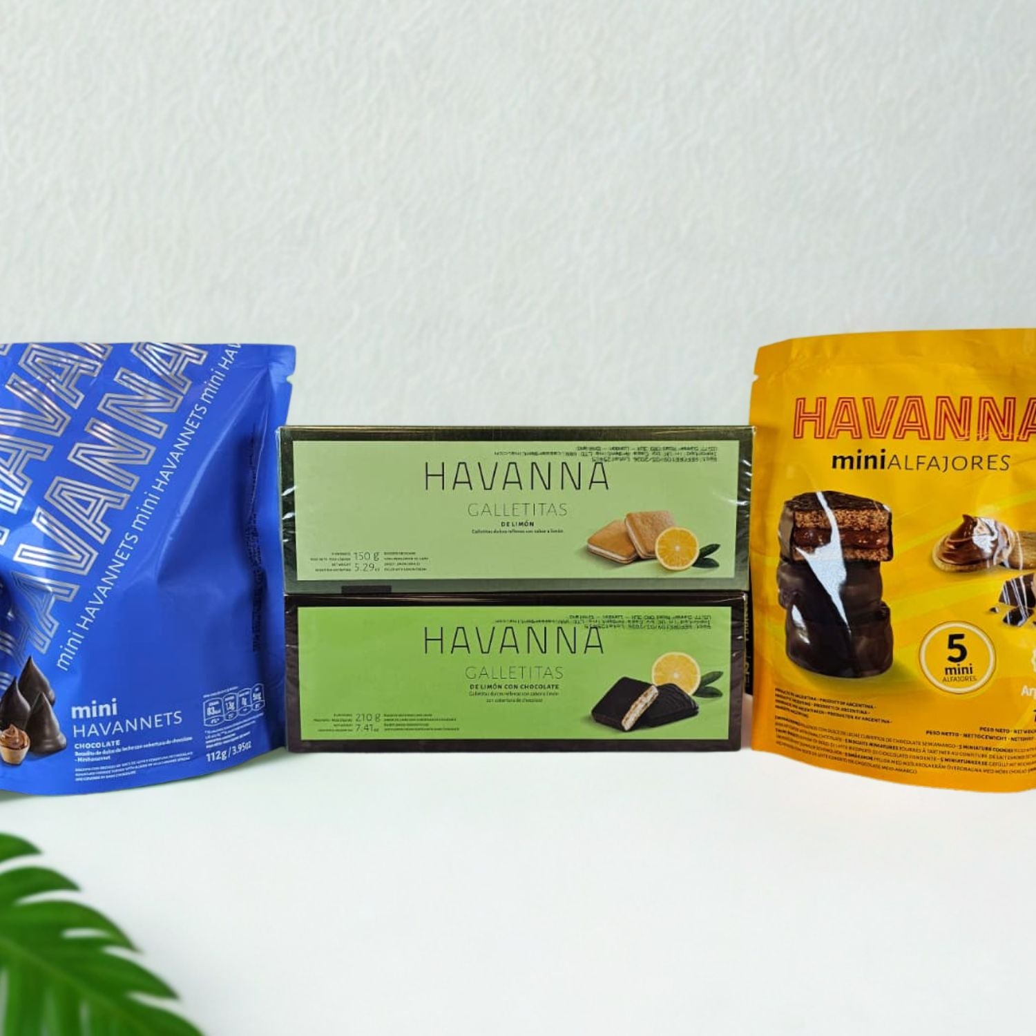 Start with the Havanna Lemon Cookies – Galletitas de Limón, soft shortbread sandwiched with zesty lemon cream. Then enjoy the Havanna Lemon Cookies – Galletitas Limón Chocolate, combining tangy lemon with a rich chocolate coating for a sophisticated twist. Complete the indulgence with the Havanna Mini Chocolate Alfajores, bite-sized delights with delicate chocolate coating, soft, crumbly biscuit layers, and luscious dulce de leche, and the Havanna Havannets Mini, chocolate-covered bites filled with silky dulce de leche, perfect for snacking or sharing.